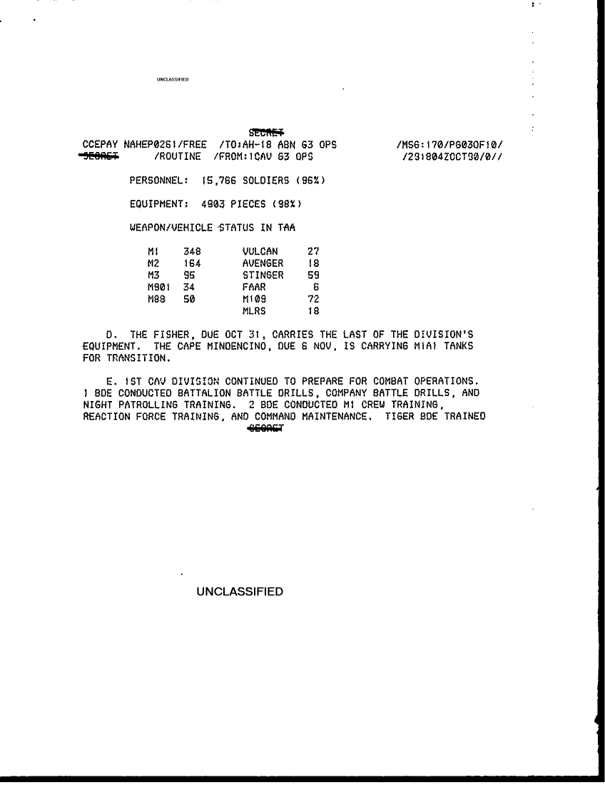 Document 6 f:/Week-18/BX000038/DUTY LOG 1 CAV DIV SITREPS G3 OCT 90/major significant activitlies summary last 24 ho:06079615285256
