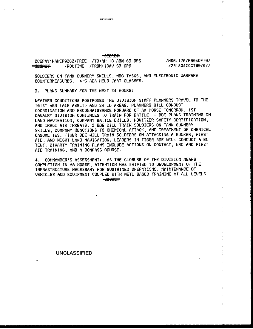 Document 6 f:/Week-18/BX000038/DUTY LOG 1 CAV DIV SITREPS G3 OCT 90/major significant activitlies summary last 24 ho:06079615285256