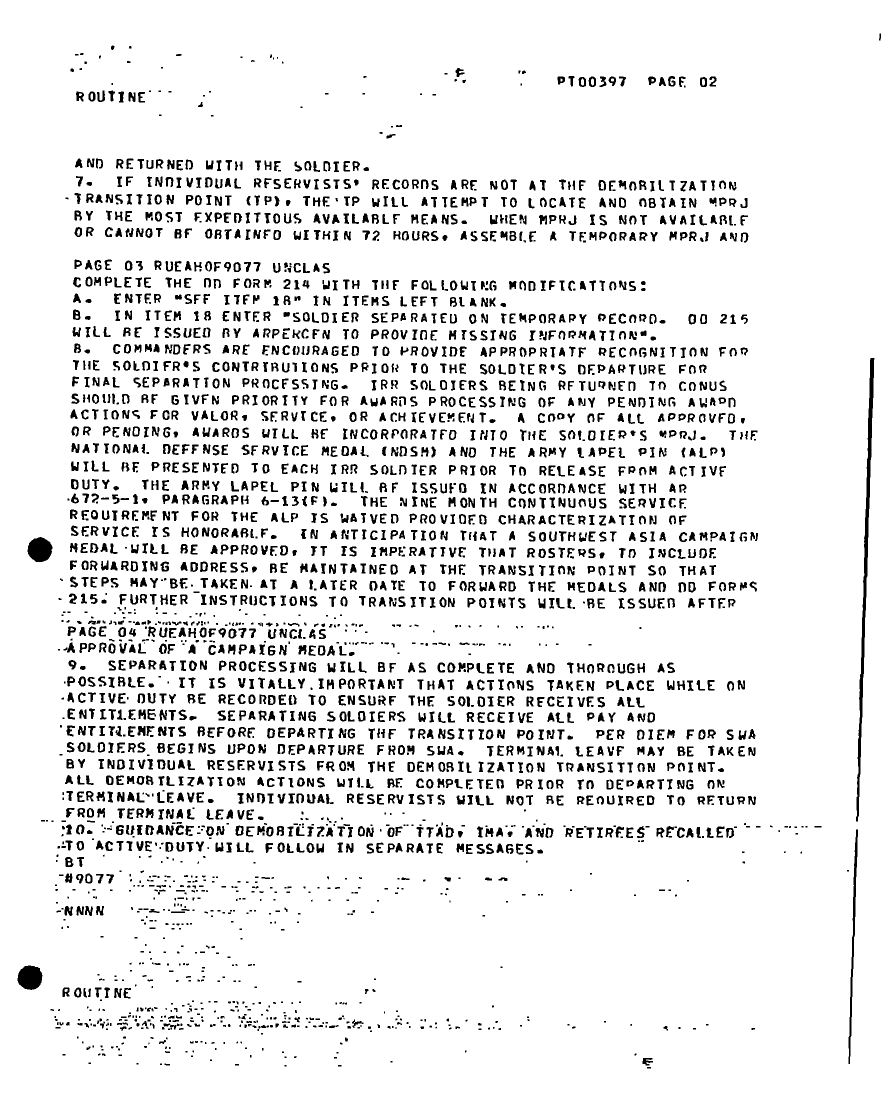 Document 6 f:/Week-20/BX001422/INCOMING DESERT SHIELD OPERATIONAL UPDATES DOM MAR 1 OF 5/demobilization processing of indiv ready reservi:06079615562516