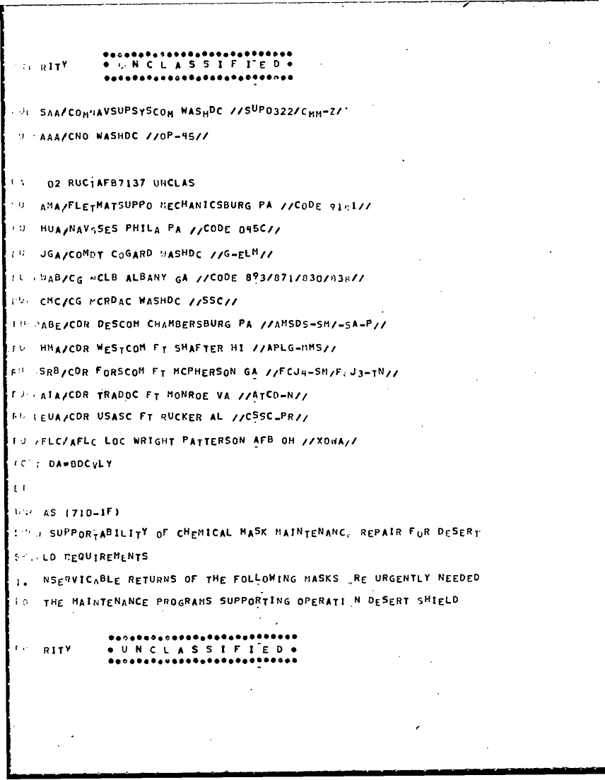 Document 4 f:/Week-19/BX001405/CHEMICAL UNIT STATUS/supportability of chemical mask maintenence:0607:06079615562522