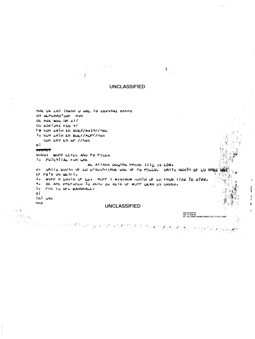 Document 1 f:/Week-18/BX000057/DUTY LOG MAIN CP MESSAGES 20 ENGINEER BDE 25 FEB 91/mopp level and pb pills:06219615523240