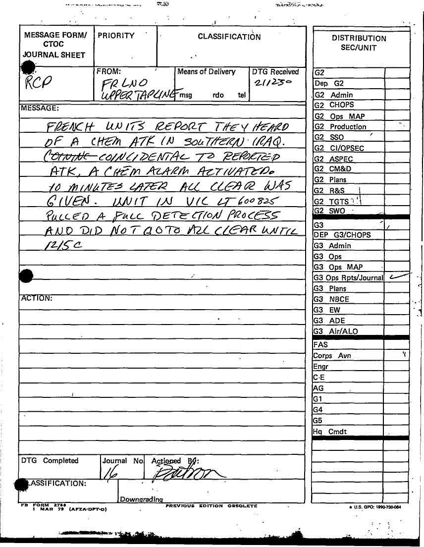 Document 1 f:/Week-09/BX000019/DUTY LOG G3 REAR 22 JAN 91/french units report chemical attack:0621961552128