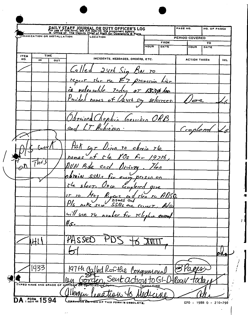 Document 135 f:/Week-22/BX001433/MESSAGE-TELEPHONE TRAFFIC/daily staff journal or duty officers log:06219615521613