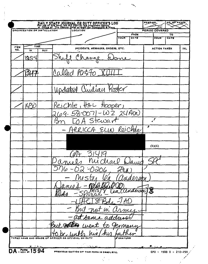 Document 135 f:/Week-22/BX001433/MESSAGE-TELEPHONE TRAFFIC/daily staff journal or duty officers log:06219615521613