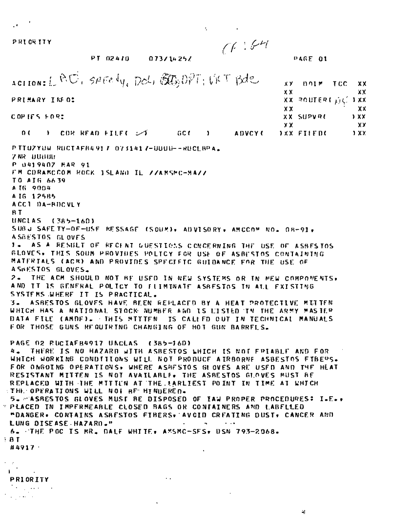 Document 1 f:/Week-22/BX001428/INCOMING MESSAGES DESERT SHIELD G4 MAR/safety of use message advisory:06219615521714