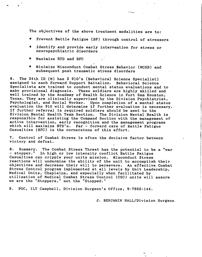 Subject = TREATMENT OF COMBAT STRESS IN MASS CASUALTIES
