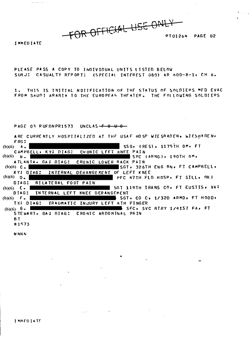 Document 2 f:/Week-22/BX001428/INCOMING MESSAGES DESERT SHIELD MEDDAC NOV/casualty report special interest 080:06219615522120