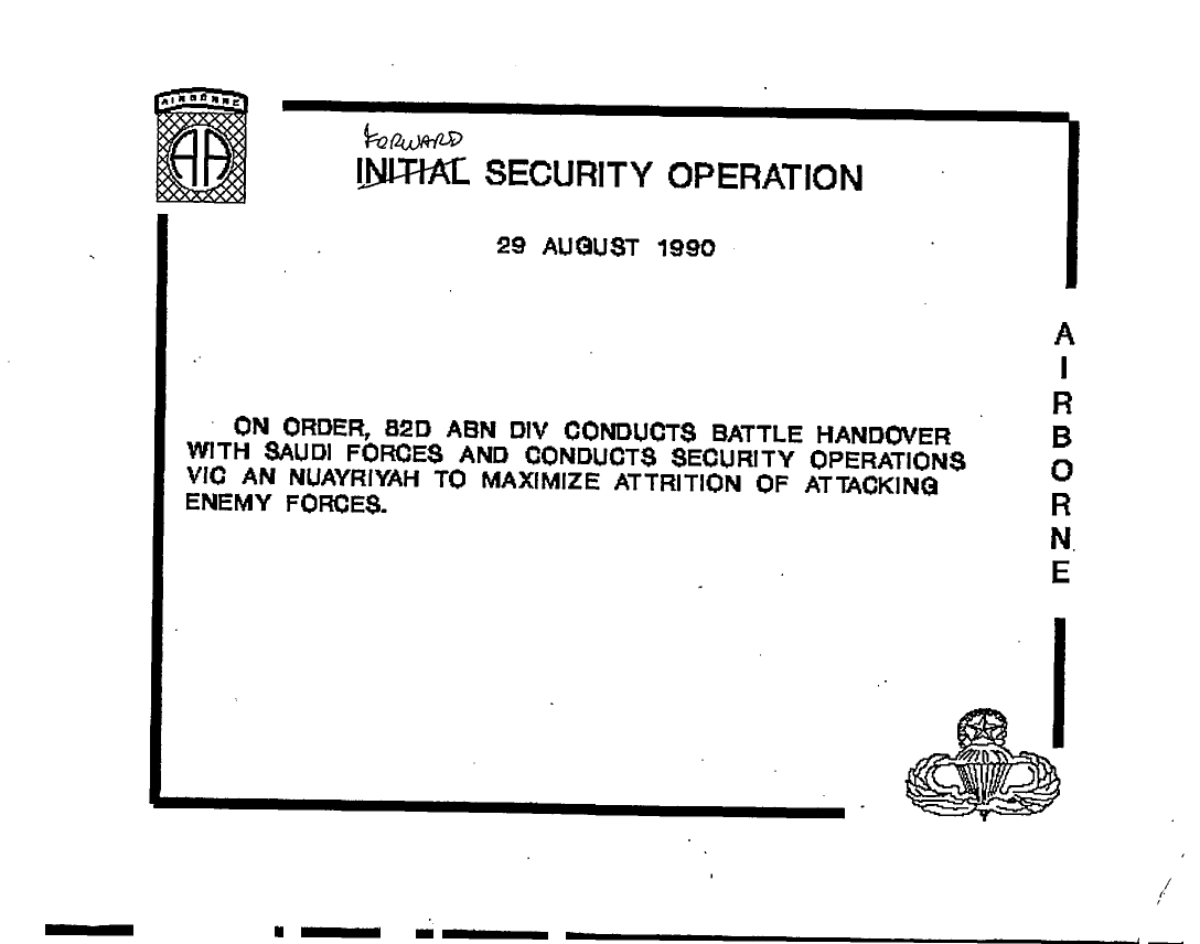 Document 9 f:/Week-22/BX001502/PROGRAM BRIEFINGS/establishment of the lodgement 7 aug 90:07019618404847