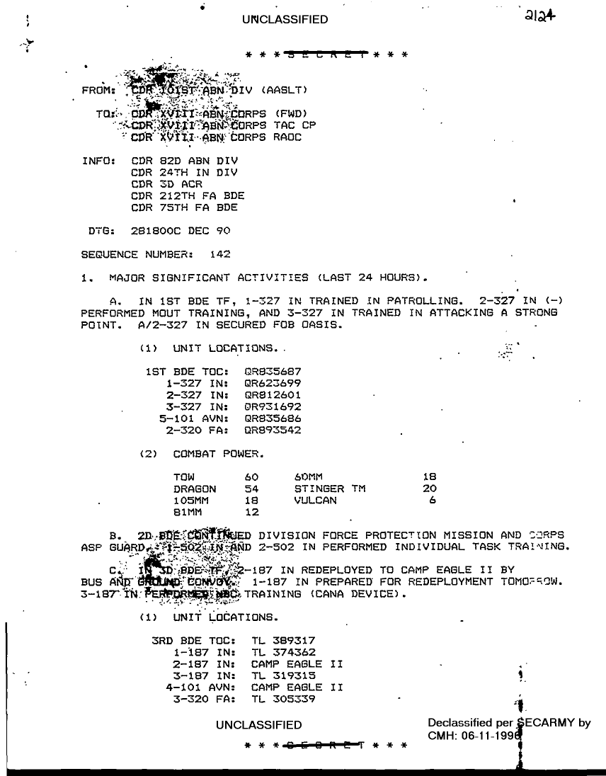 Document 4 f:/Week-18/BX000038/DUTY LOG 101 ABN SITREPS G3 DEC 90/commanders narrative summary 28 dec 90:0705961342129