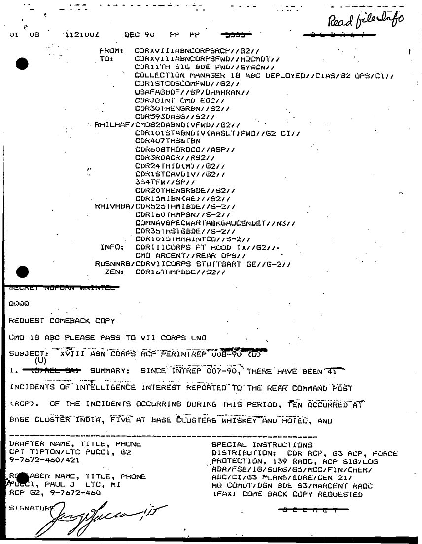 Document 77 f:/Week-16/BX000054/DUTY LOG REAR CP G3 13 DEC 90/xviii abn corps rcp perintrep:07059613421310
