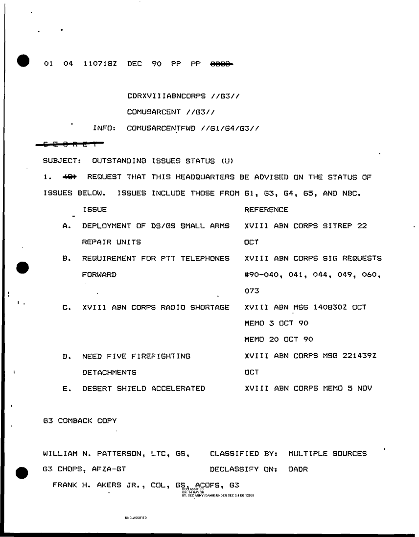 Document 77 f:/Week-16/BX000054/DUTY LOG REAR CP G3 13 DEC 90/xviii abn corps rcp perintrep:07059613421310