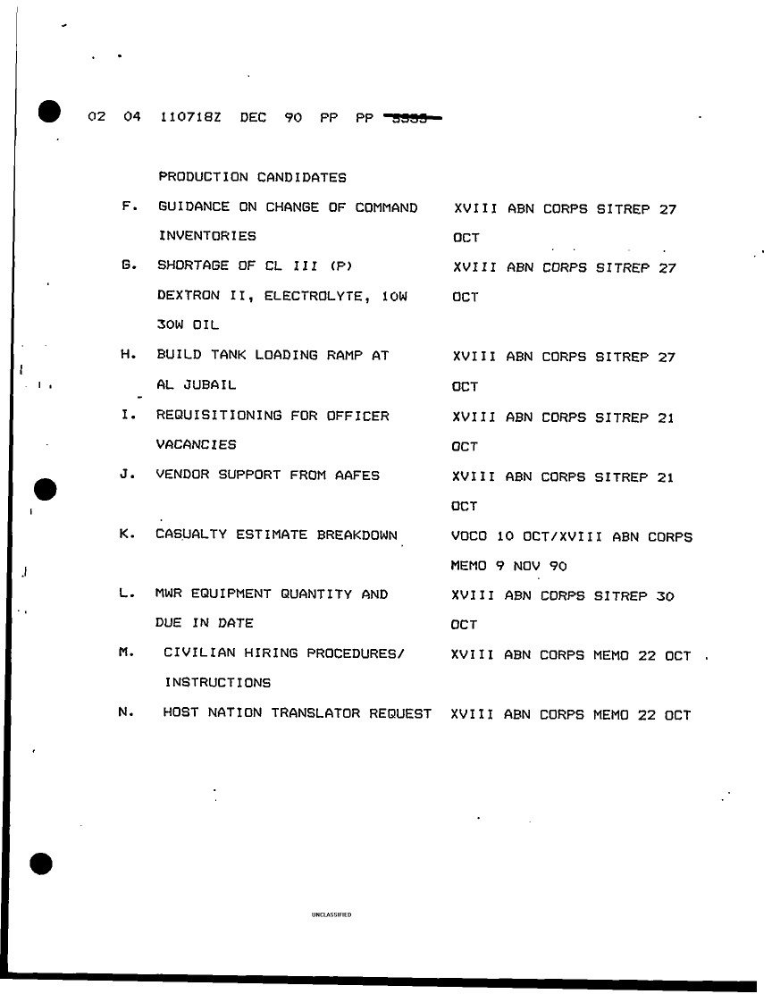 Document 77 f:/Week-16/BX000054/DUTY LOG REAR CP G3 13 DEC 90/xviii abn corps rcp perintrep:07059613421310