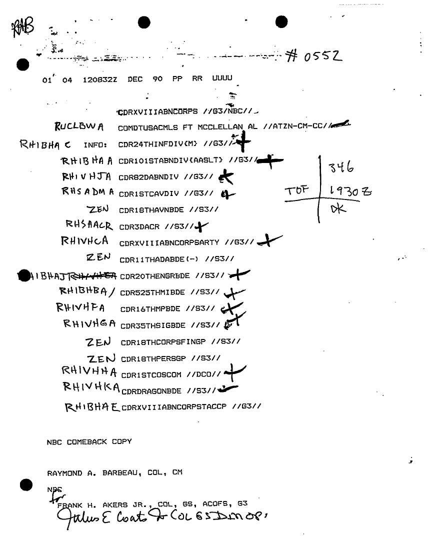 Document 77 f:/Week-16/BX000054/DUTY LOG REAR CP G3 13 DEC 90/xviii abn corps rcp perintrep:07059613421310