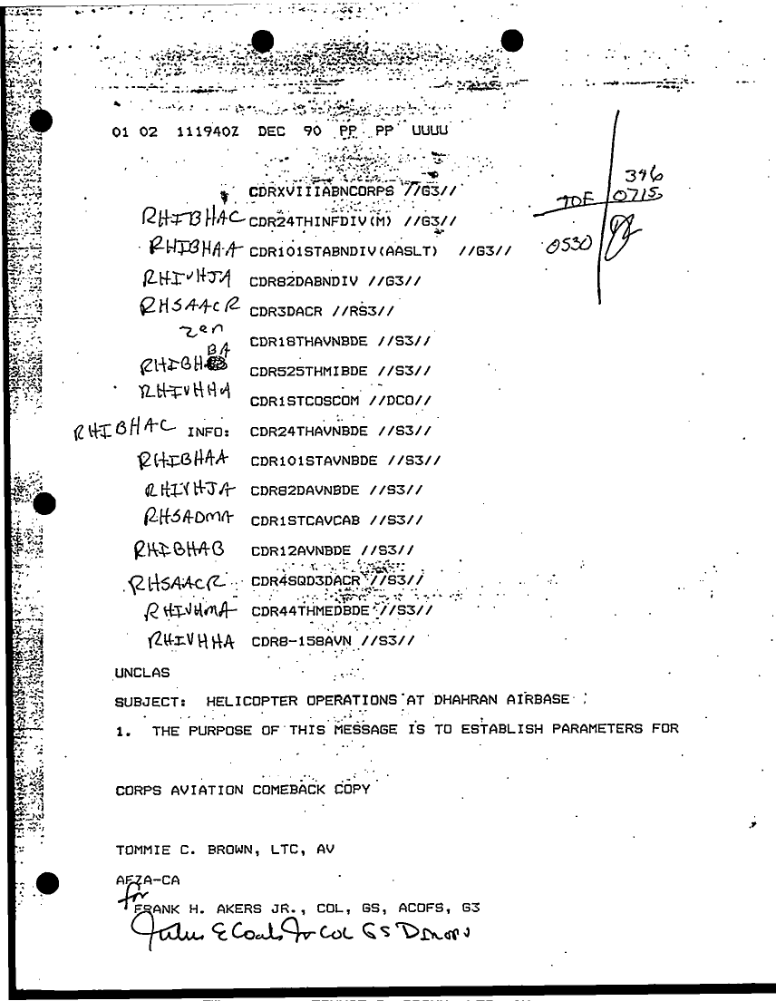 Document 77 f:/Week-16/BX000054/DUTY LOG REAR CP G3 13 DEC 90/xviii abn corps rcp perintrep:07059613421310