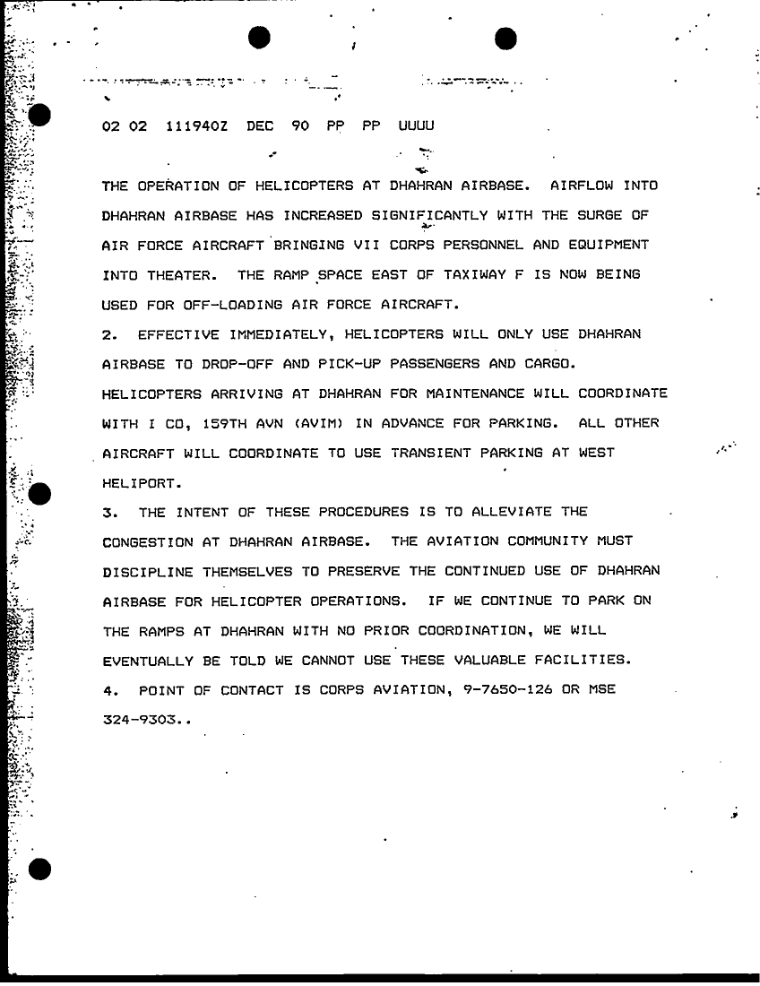 Document 77 f:/Week-16/BX000054/DUTY LOG REAR CP G3 13 DEC 90/xviii abn corps rcp perintrep:07059613421310