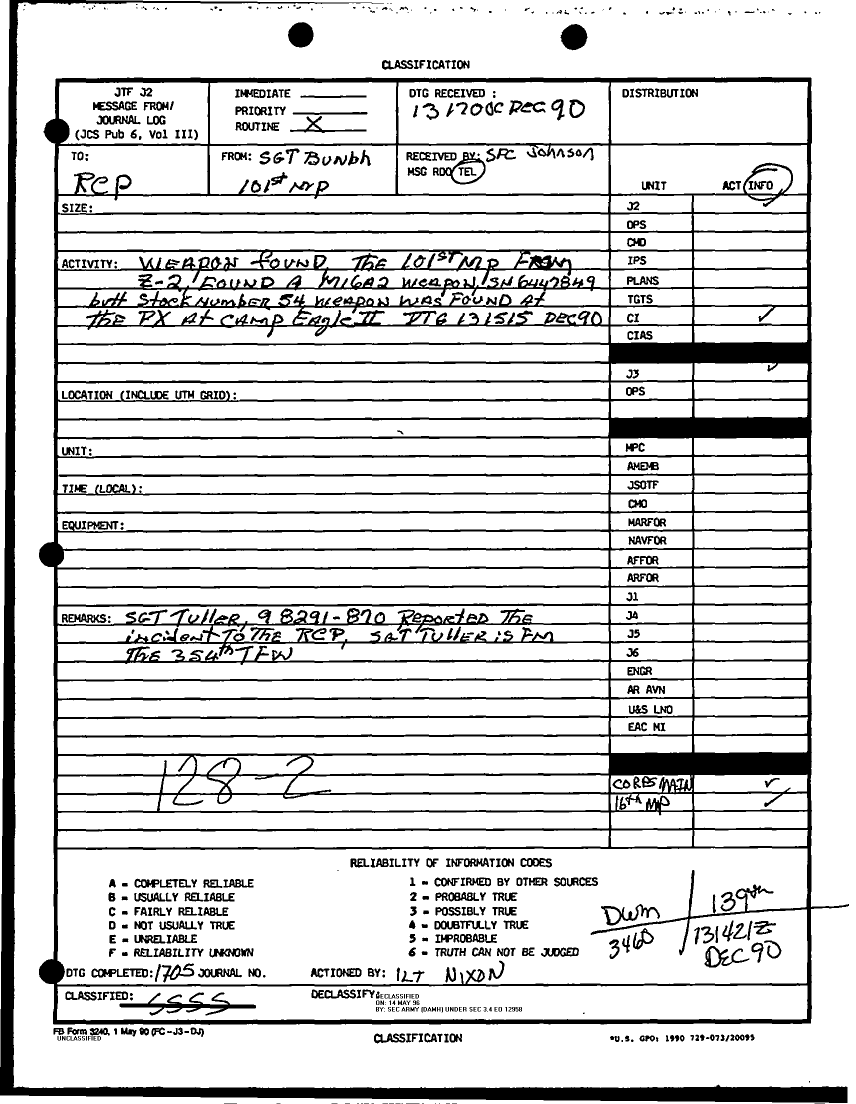 Document 77 f:/Week-16/BX000054/DUTY LOG REAR CP G3 13 DEC 90/xviii abn corps rcp perintrep:07059613421310