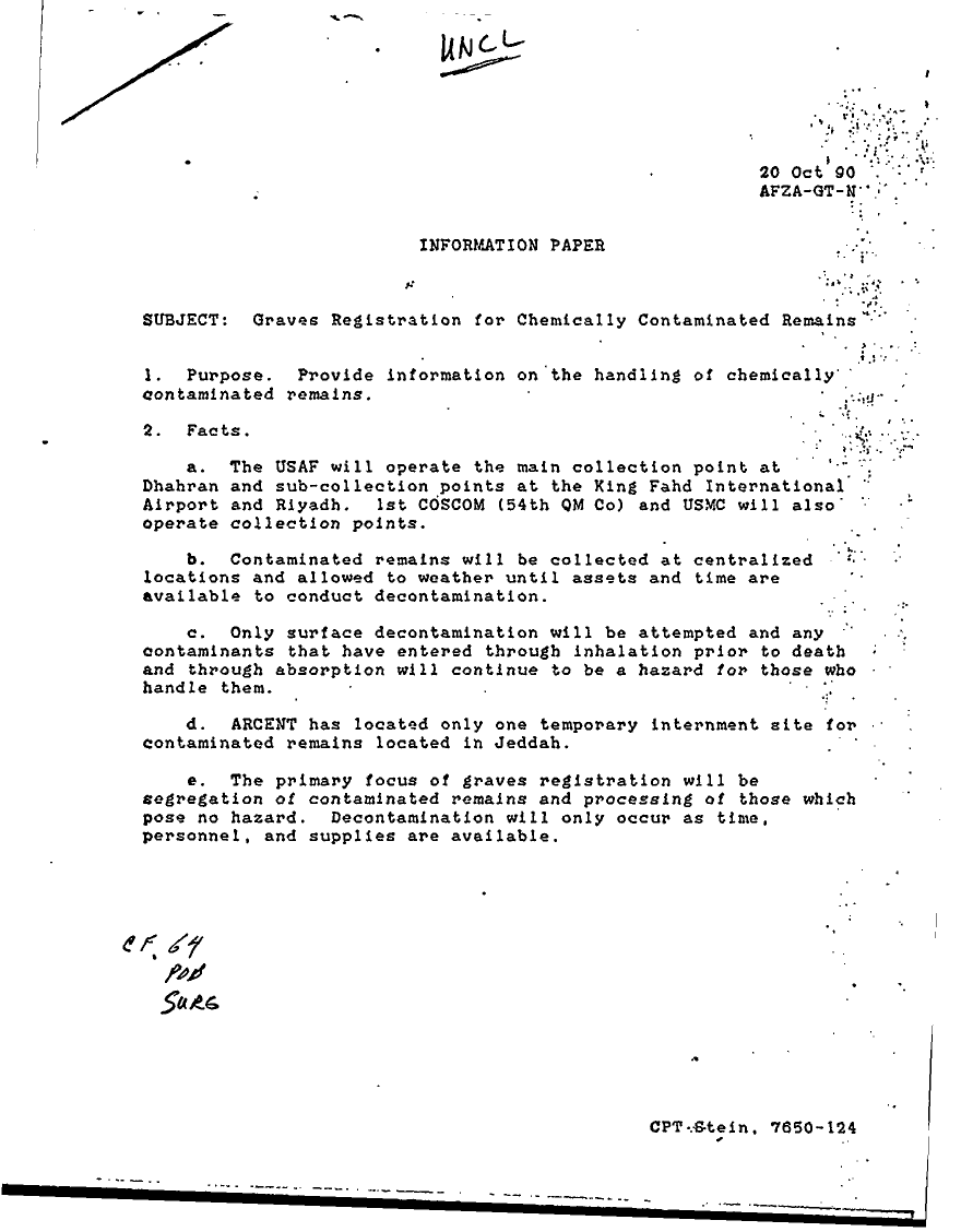Subject = GRAVES REGISTRATION FOR CHEMICALLY CONTAMINATED