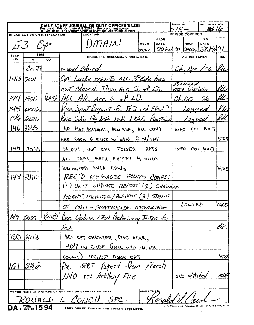 Document 59 f:/Week-22/BX001602/DUTY LOGS G3 MAIN 19-22 FEB 91/daily staff journal 20 feb 91:07059613421614