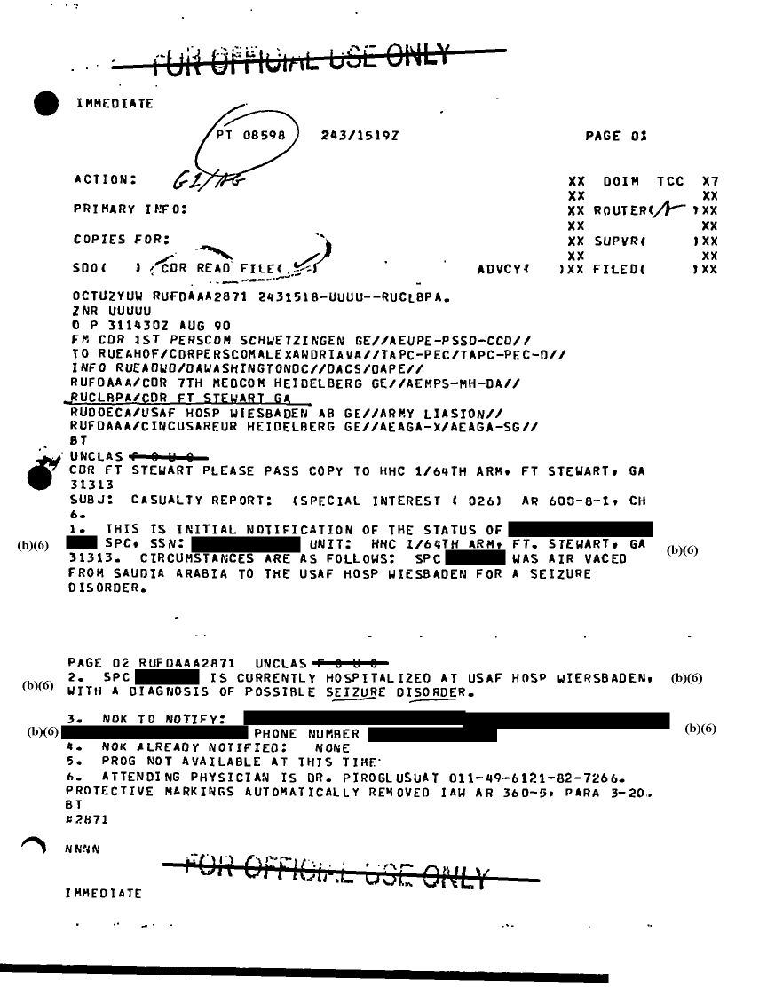 Document 1 f:/Week-20/BX001419/INCOMING DESERT SHILED MESSAGES AG G1 AUGUST/casualty report 31 aug 90:07059613422526