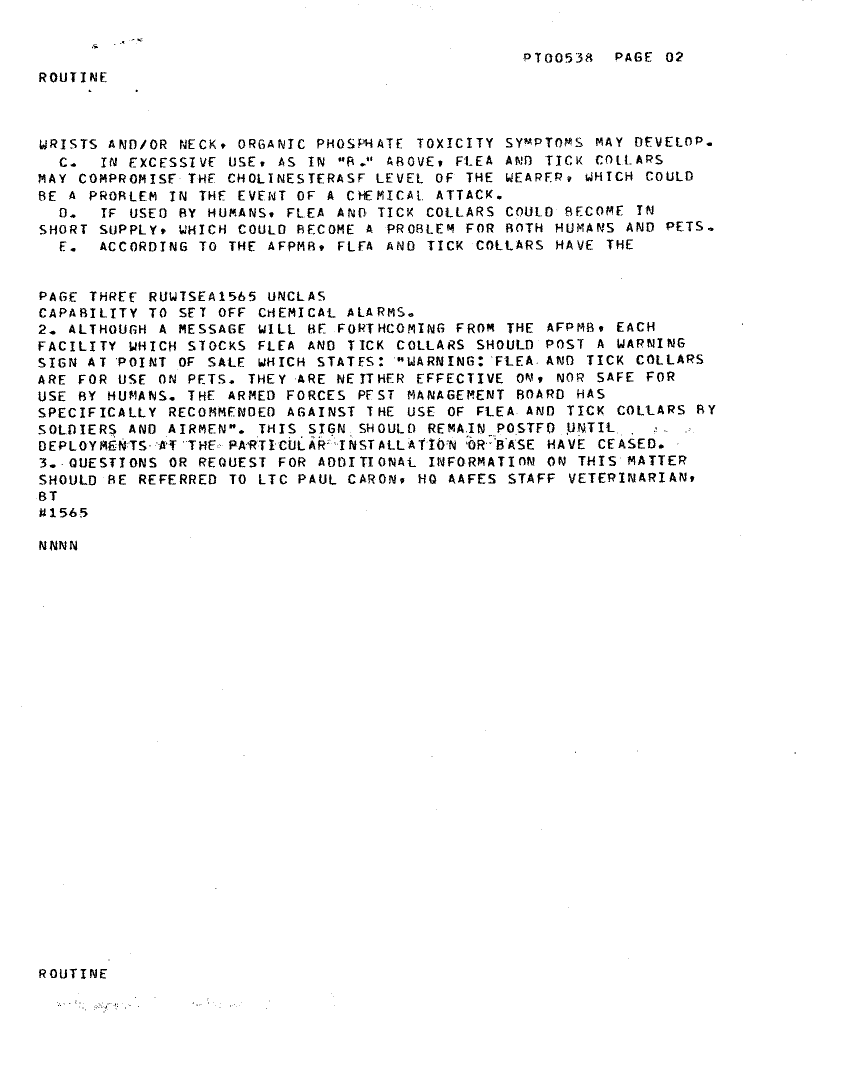 Document 2 f:/Week-22/BX001428/INCOMING MESSAGES DESERT SHIELD MEDDAC DEC/message health alert flea and tick collars oper:07059613422828