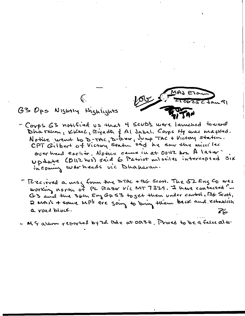 Document 1 f:/Week-20/BX001414/DUTY LOG 21 JAN 91 G3/g3 ops nightly highlights 21 jan 91:0705961342095