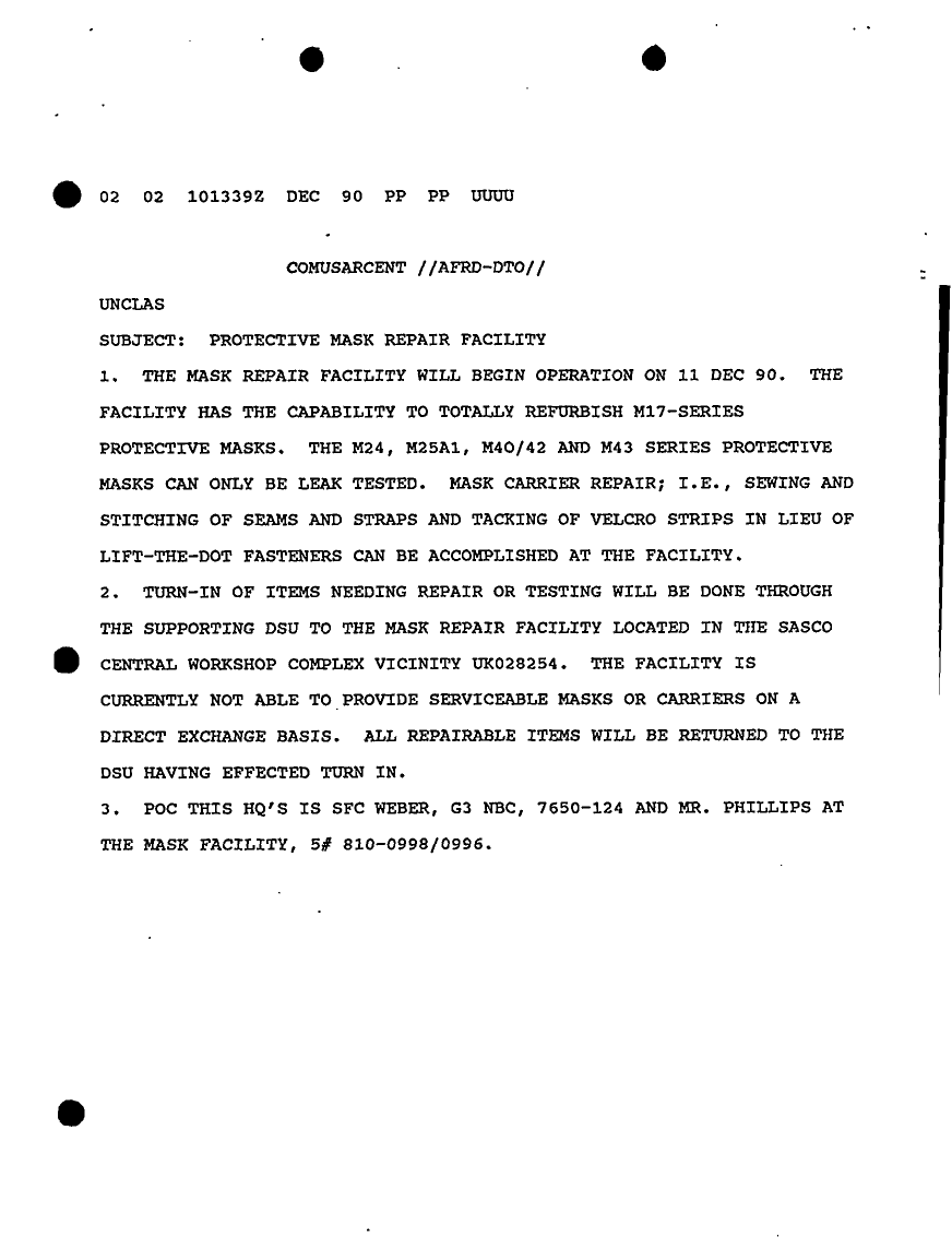 Subject = PROTECTIVE MASK REPAIR FACILITY