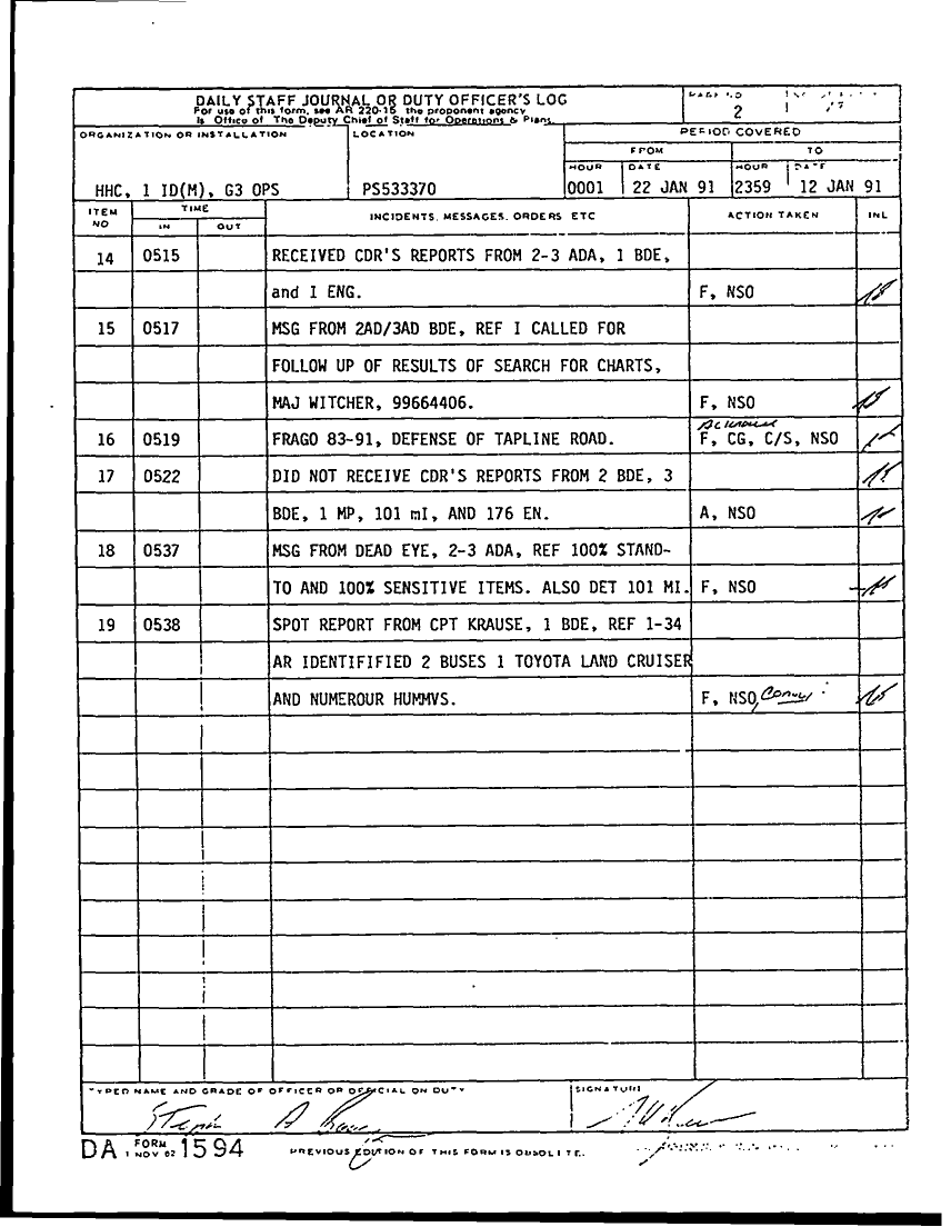 Folder Title = DAILY STAFF JOURNALS JAN 91