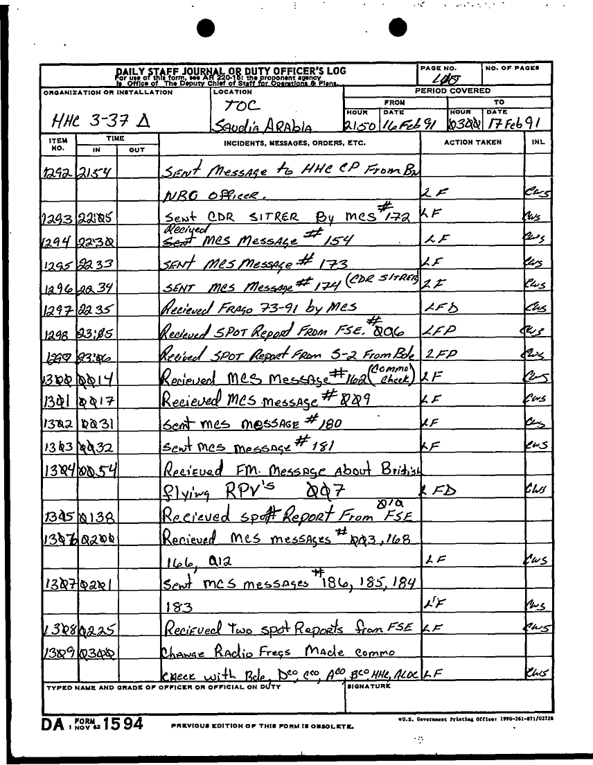 Document 58 f:/Week-27/BX001030/FEBRUARY 1991 DAY 16-23/daily staff journal:0719961126387