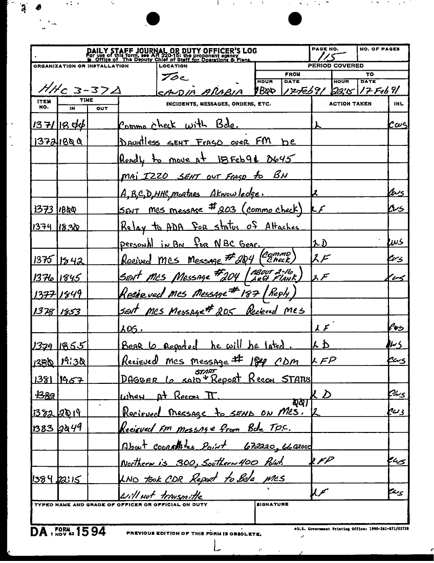 Document 58 f:/Week-27/BX001030/FEBRUARY 1991 DAY 16-23/daily staff journal:0719961126387
