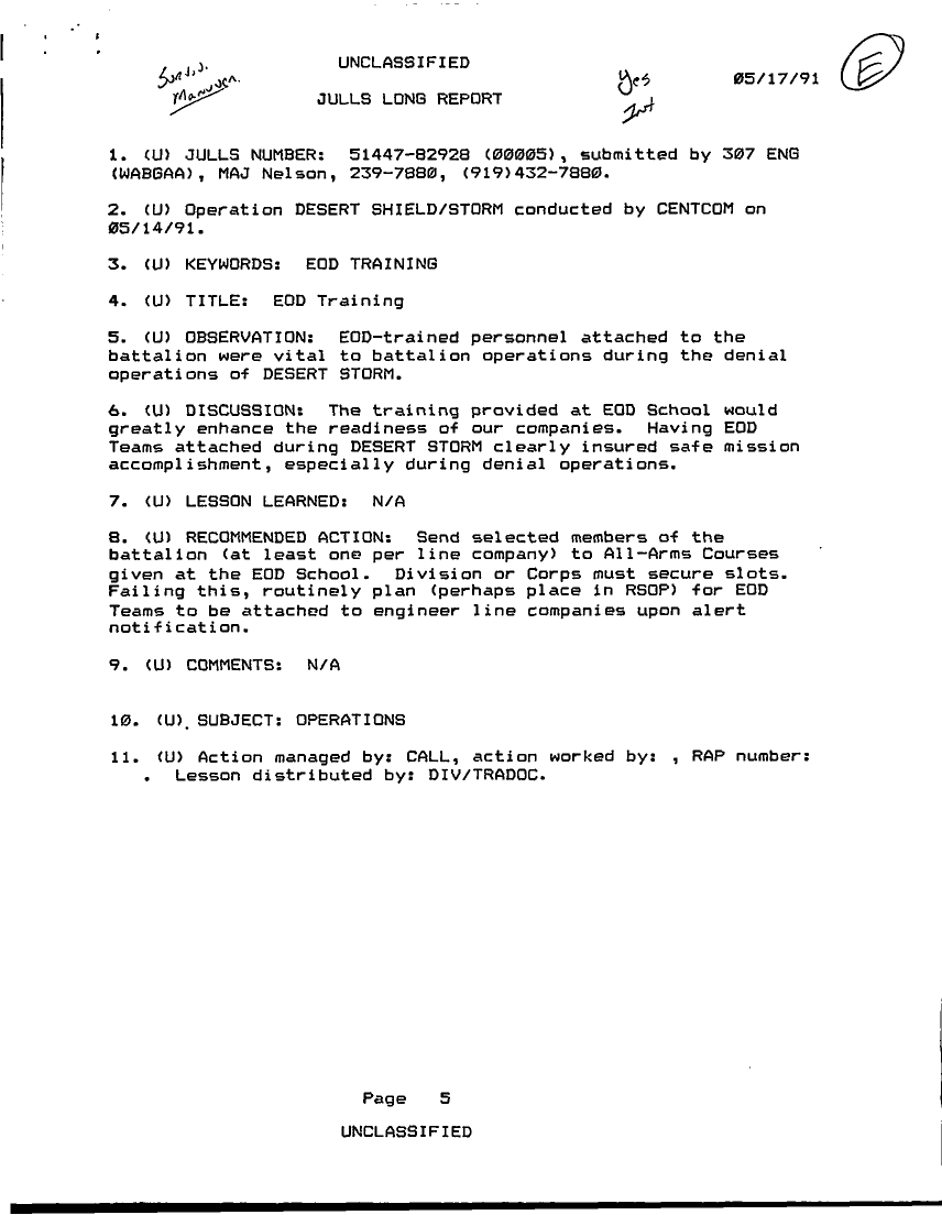 Document 38 f:/Week-22/BX001511/JULLS LONG REPORT 17 MAY 91 - 1/memorandum julls long report 17 may 91:07199610184621
