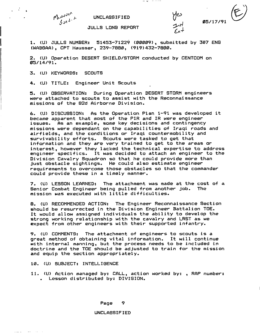 Document 38 f:/Week-22/BX001511/JULLS LONG REPORT 17 MAY 91 - 1/memorandum julls long report 17 may 91:07199610184621