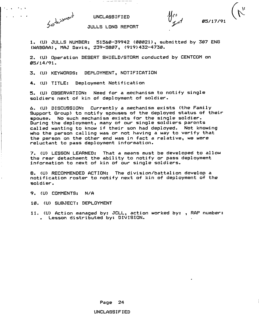Folder Title = JULLS LONG REPORT 17 MAY 91 - 1