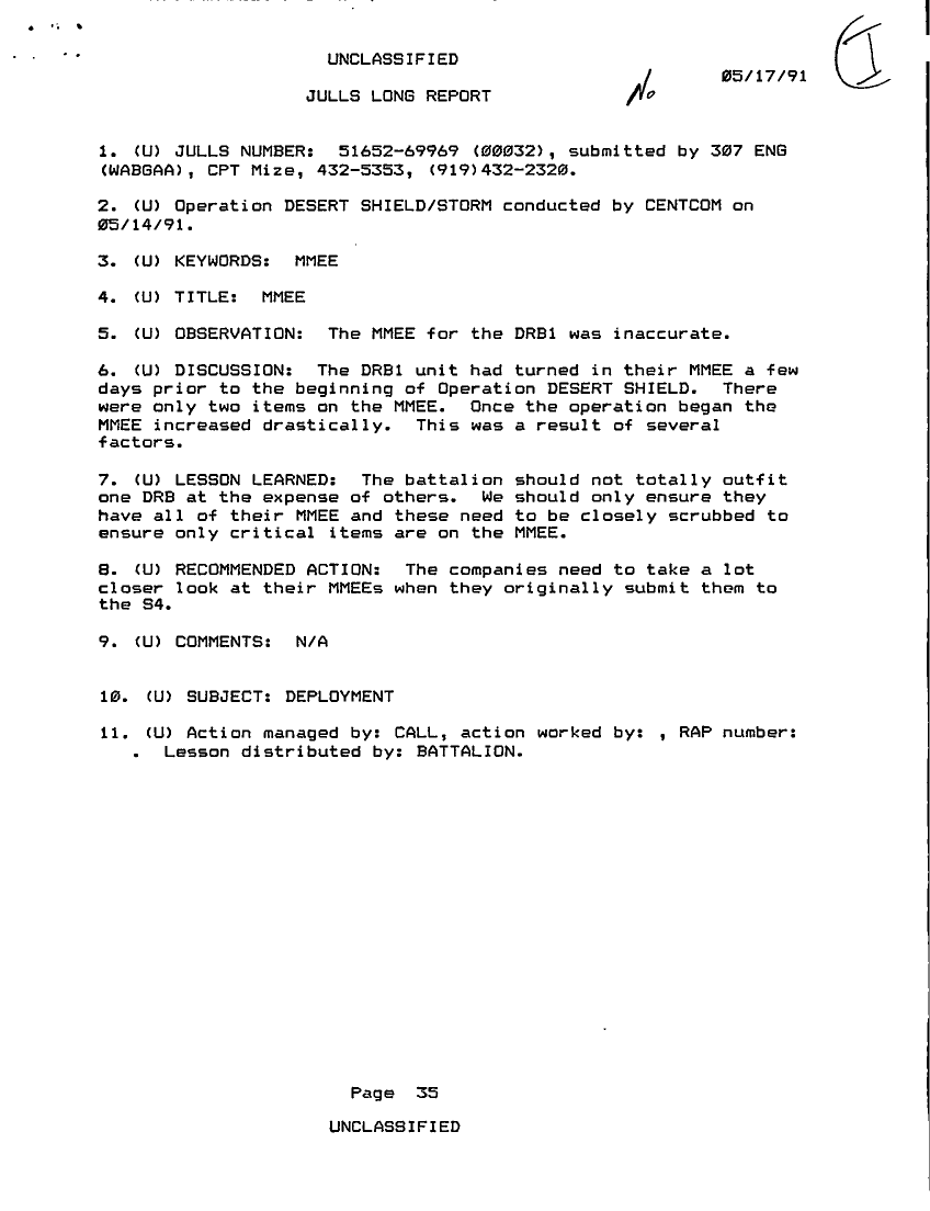 Folder Title = JULLS LONG REPORT 17 MAY 91 - 1