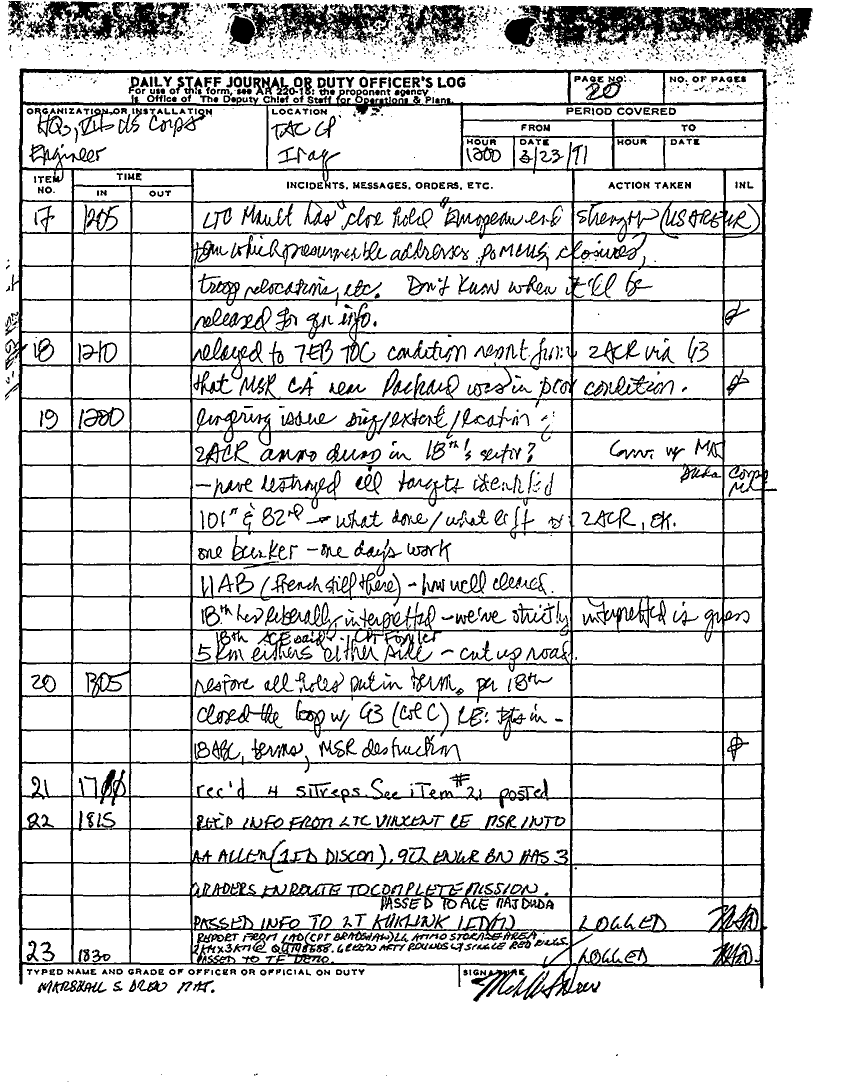 Document 59 f:/Week-25/BX000252/DAILY STAFF JOURNAL 16 MAR TO 13 APRIL 1991 SITREPS/daily staff journal:07199610194645