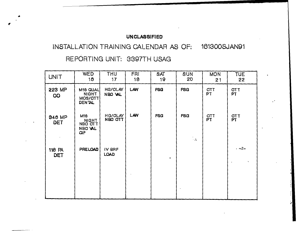 Document 20 f:/Week-22/BX001604/MESSAGES AND STATUS REPORTS/command snapshot 161300sjan91 xviii abn corps s:07199610201164