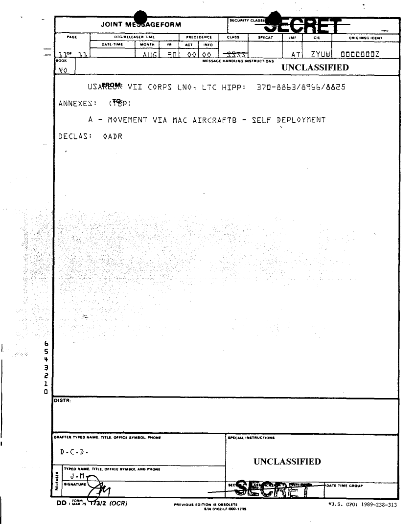 Subject = ANNEX A TO MOVEMENT TO VII CORPS DESERT SHIELD O