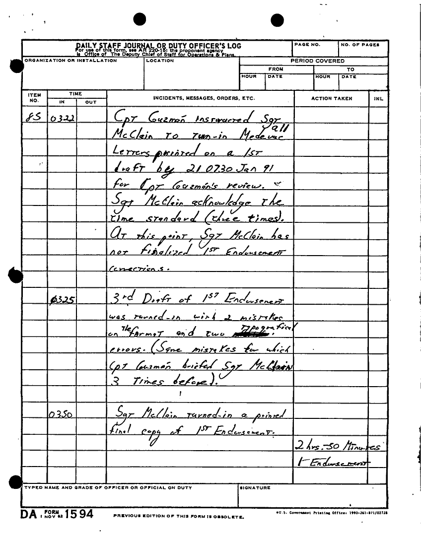 Document 180 f:/Week-22/BX001433/MESSAGE TRAFFIC LOGS-COMPLETED ACTIONS/daily staff journal duty log:07199610203890