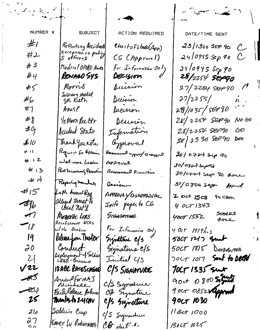 Document 180 f:/Week-22/BX001433/MESSAGE TRAFFIC LOGS-COMPLETED ACTIONS/daily staff journal duty log:07199610203890