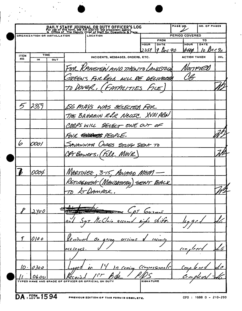 Document 180 f:/Week-22/BX001433/MESSAGE TRAFFIC LOGS-COMPLETED ACTIONS/daily staff journal duty log:07199610203890