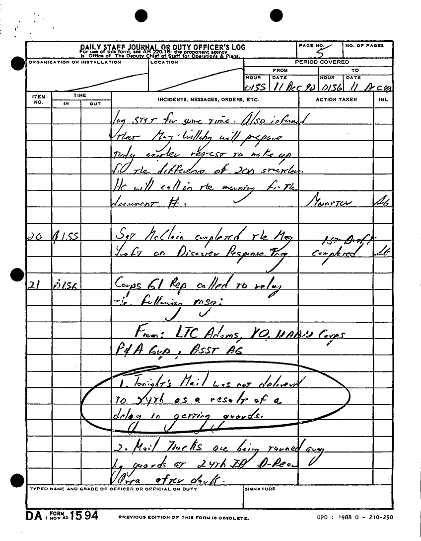 Document 180 f:/Week-22/BX001433/MESSAGE TRAFFIC LOGS-COMPLETED ACTIONS/daily staff journal duty log:07199610203890