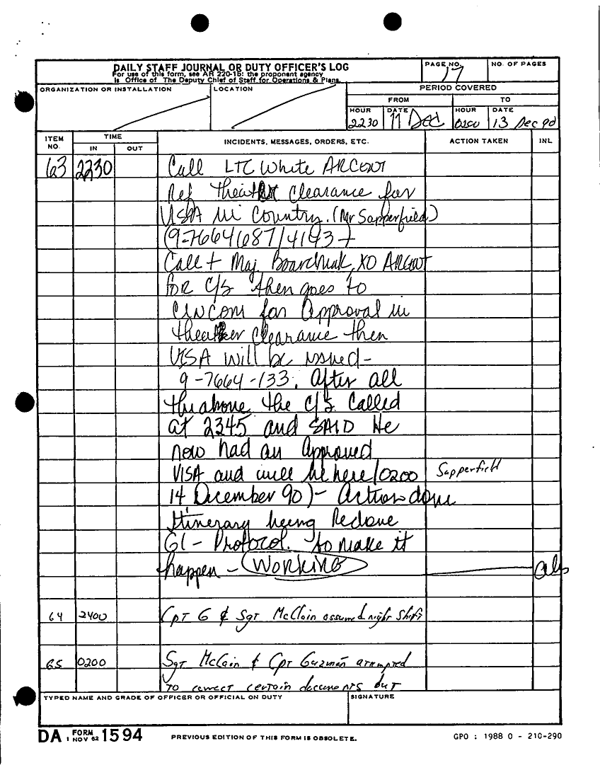 Document 180 f:/Week-22/BX001433/MESSAGE TRAFFIC LOGS-COMPLETED ACTIONS/daily staff journal duty log:07199610203890
