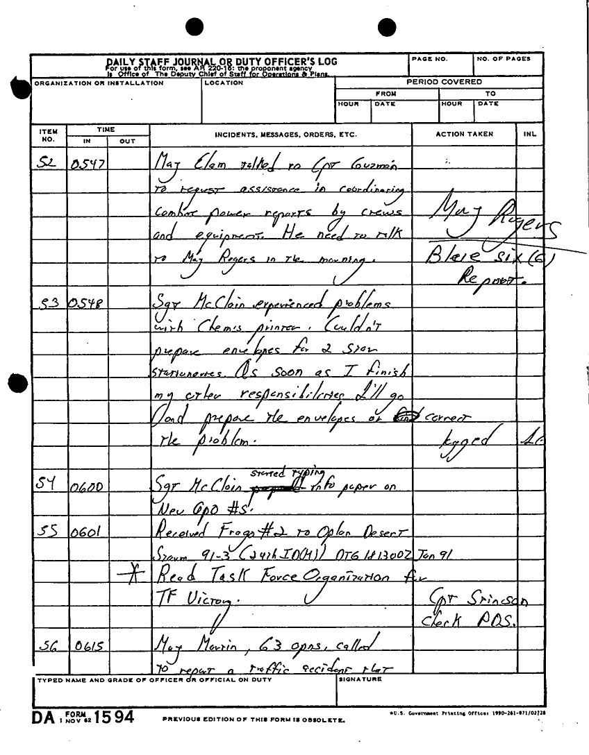 Document 180 f:/Week-22/BX001433/MESSAGE TRAFFIC LOGS-COMPLETED ACTIONS/daily staff journal duty log:07199610203890