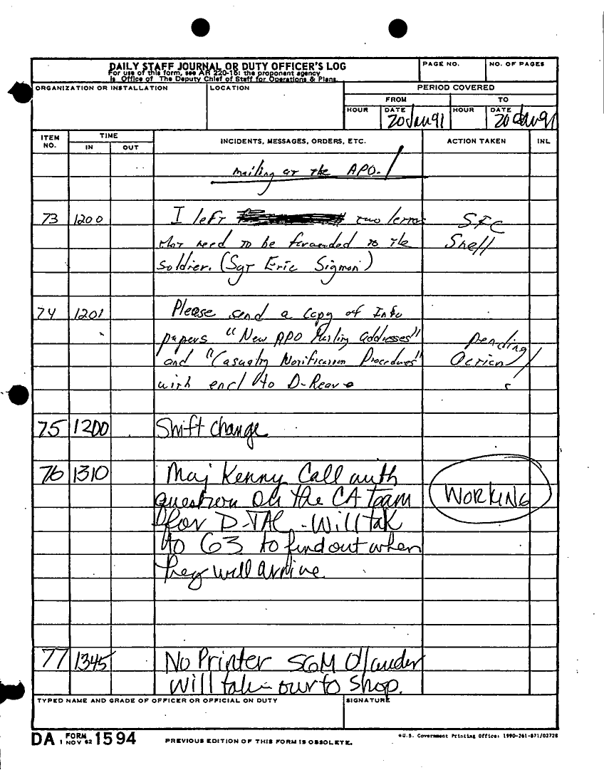 Document 180 f:/Week-22/BX001433/MESSAGE TRAFFIC LOGS-COMPLETED ACTIONS/daily staff journal duty log:07199610203890