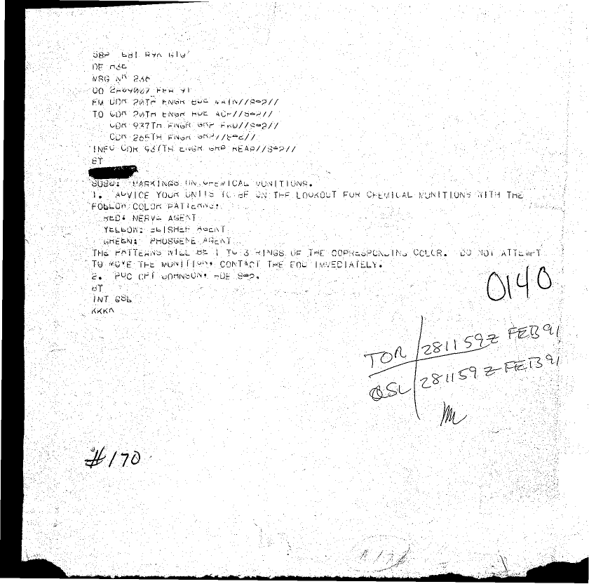 Document 1 f:/Week-26/BX001006/DUTY LOG 11- 29 FEB 91 - 3/markings on chemical munitions:07269614230630