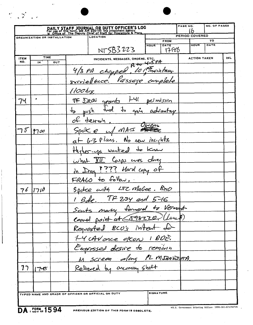 Document 15 f:/Week-27/BX001034/DAILY JOURNAL-STAFF JOURNAL AND TACTICAL OPERATIONS CENTER -TOC- LOGS DESERT STORM 17 FEB 91/daily staff journals 1 4 cav 17 feb 91:07269614225817
