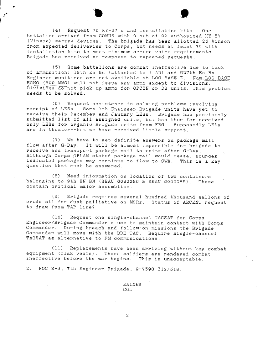 Document 35 f:/Week-24/BX000213/SITUATION REPORTS 7TH ENG BDE 22 DEC 90- 10 APR 91/daily commander sitrep:07269614225918