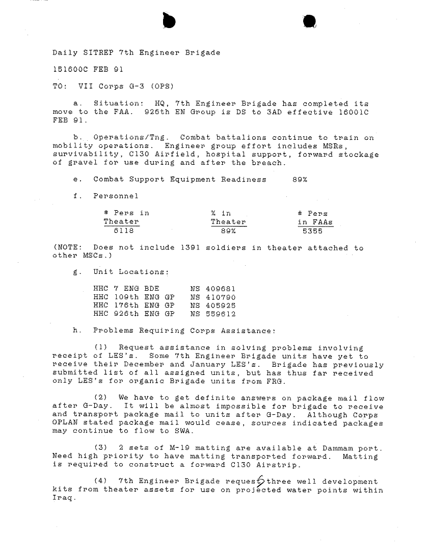Document 35 f:/Week-24/BX000213/SITUATION REPORTS 7TH ENG BDE 22 DEC 90- 10 APR 91/daily commander sitrep:07269614225918