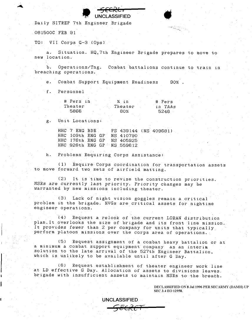 Folder Title = SITUATION REPORTS 7TH ENG BDE 22 DEC 90- 10 APR 91