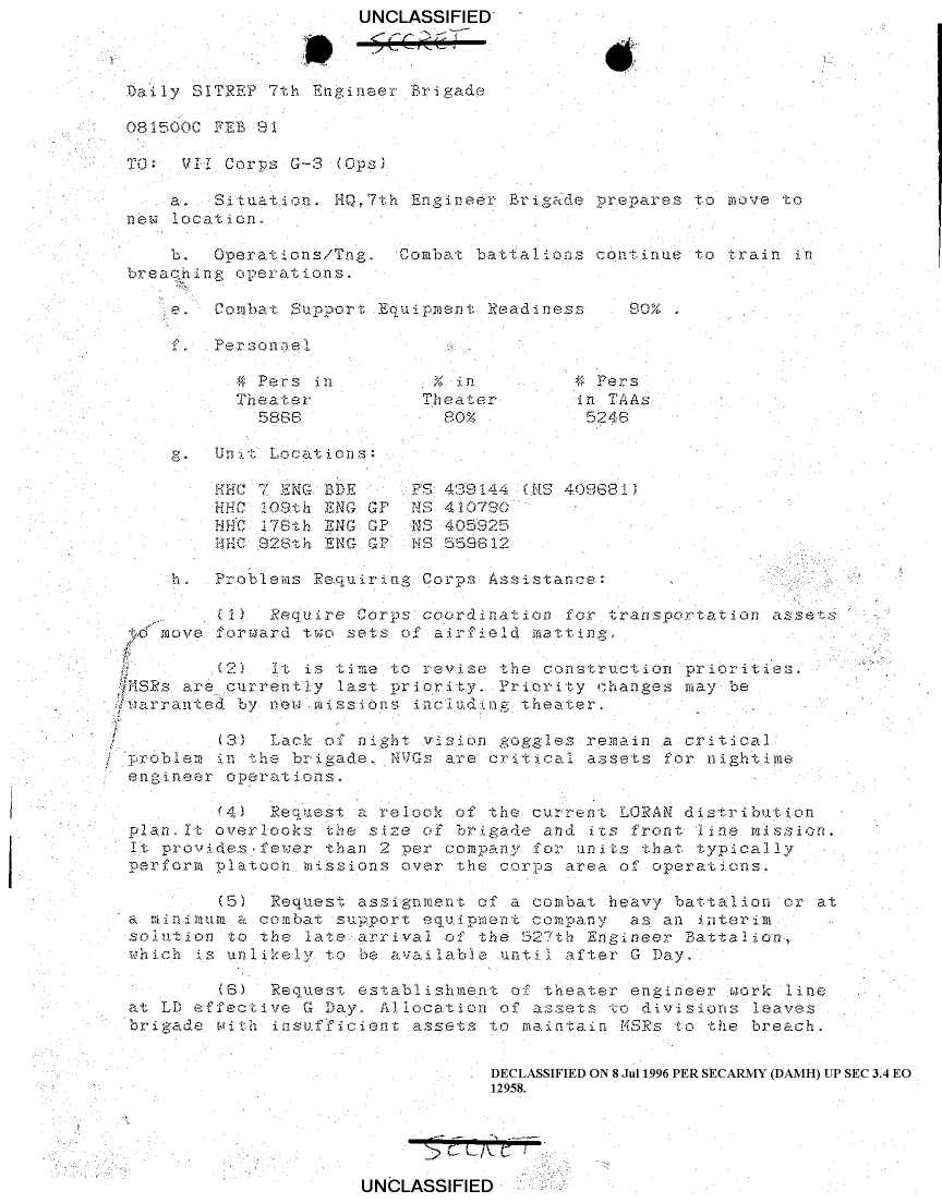 Folder Title = SITUATION REPORTS 7TH ENG BDE 22 DEC 90- 10 APR 91