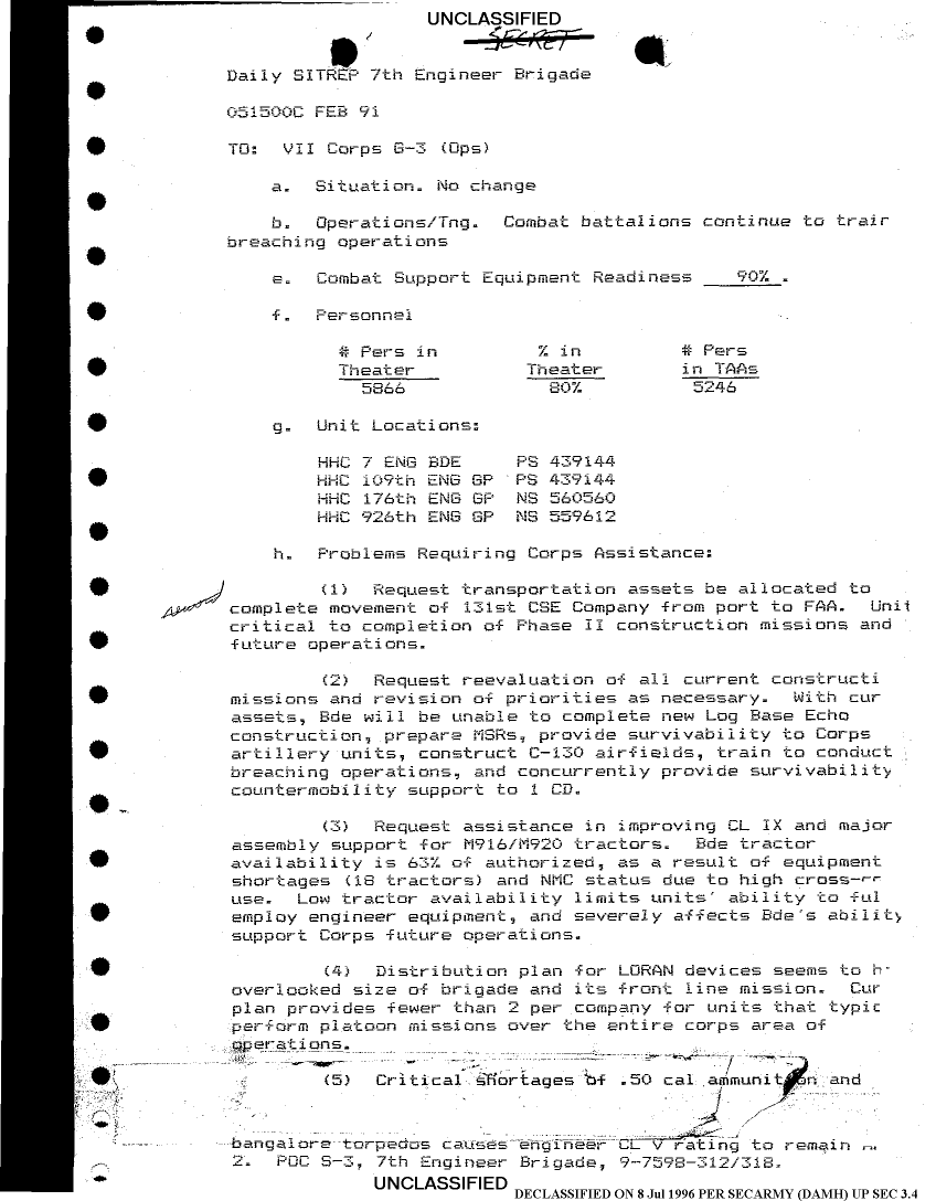 Folder Title = SITUATION REPORTS 7TH ENG BDE 22 DEC 90- 10 APR 91
